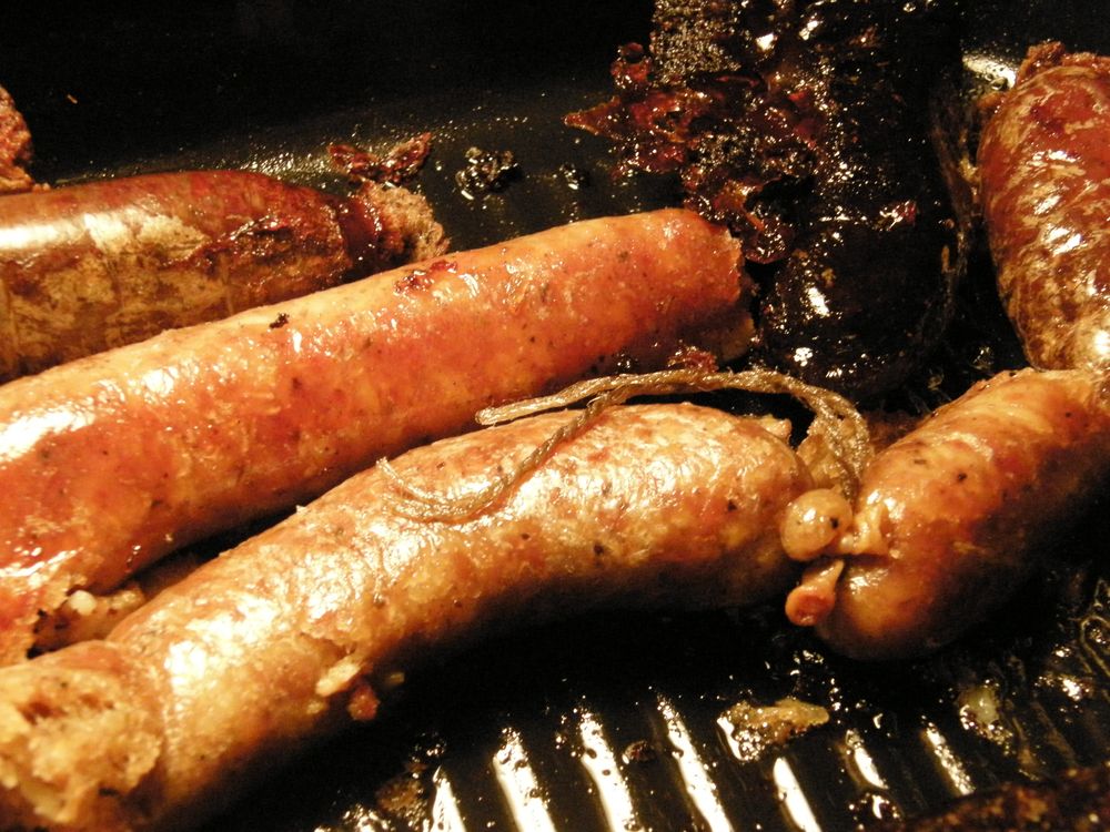 This weekend I managed to get my hands and mouth on quite an Austrian delicacy. Sausages in different variants, roasted slowly inside an old stove, until all crispy and crunchy. There was liver sausage, black pudding (in sausage form) and one kind which is called Breinwurst and filled to the brim with fantastic ingredients like pork and sorghum.