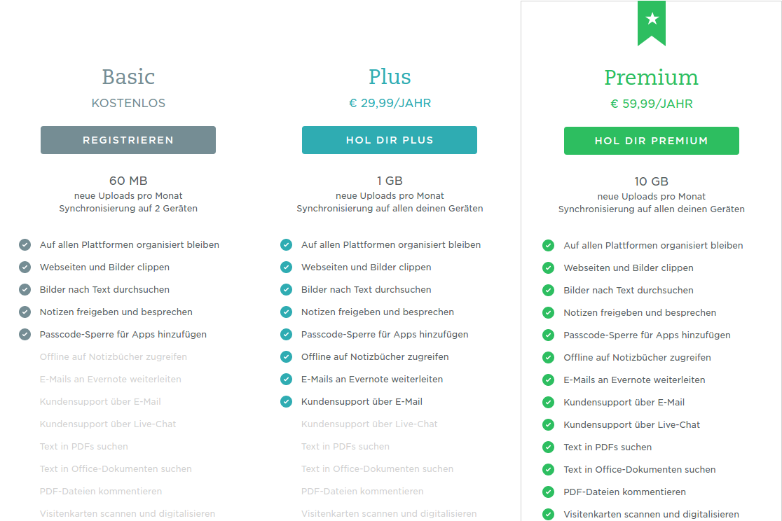 The new pricing scheme went into effect immediately, so when my annual subscription renews in about a month, I'll have the choice to either keep the functionality I've been working with for the last few years or downgrade to something they call "Evernote plus", but which lacks some of the better features of Evernote I've grown accustomed to. Also, I could just decide to not pay anything at all, but that'll more or less leave the whole thing crippled.