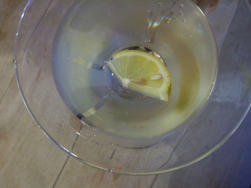 *Having brought my 2/3 full bottle of Noilly Prat to the Tupalo bash on Friday, I was forced to improvise, as my ordinary grocer doesn’t stock that finest of Vermouths. But I’ve heard that some people prefer the Martini & Rossi Dry Vermouth anyway. In the end, it doesn’t really matter, considering that Martini & Rossi actually own the Noilly Prat brand.